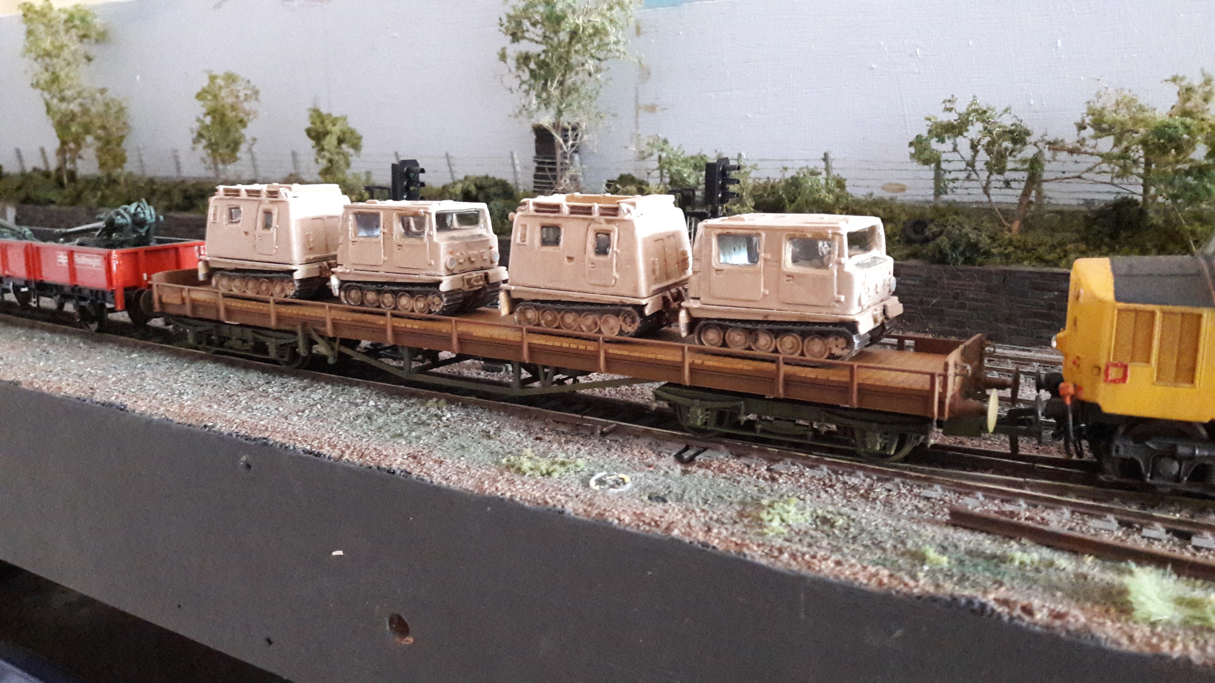 The first was an FV434 REME vehicle, the second a Samaritan CVRT based ambulance. But what for the other? Running empty was one option, but that seemed a bit of a cop out. So, a containerised kitchen/workshop unit was strapped down, as per a photo in the 2017 Rail Express Modeller's guide to military traffic.